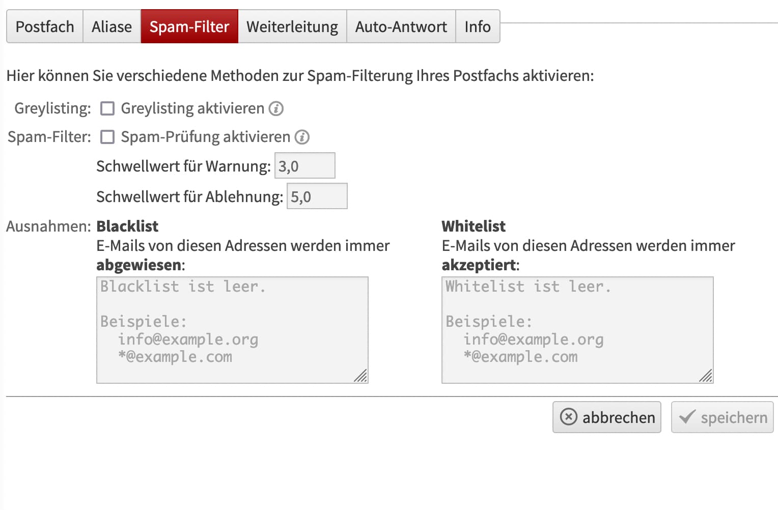Als Alternative können Sie das Greylisting entweder selbstständig über LiveConfig deaktivieren oder ein Support-Ticket erstellen, um davon befreit zu werden. Sollten trotz deaktiviertem Greylisting (also ausgeschalteter Checkbox) erhebliche Verzögerungen auftreten, aktivieren Sie die Funktion bitte kurzzeitig in LiveConfig, speichern den Dialog, öffnen diesen erneut und deaktivieren das Greylisting anschließend wieder.